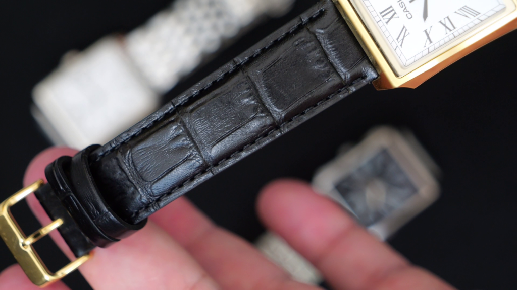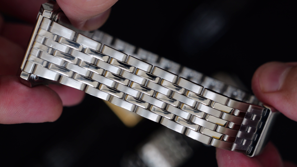 Az acél kiadásokon lévő hét részes fémszíj engem meglepett, mert tényleg nagyon jó lett a fogása, örülök, hogy nem egy ilyen három részes Rolex Oyster jellegű szíjat kapott, és az aranyváltozat krokodil mintás marhabőrszíja is látványosra és nagyon kényelmesre sikerült.